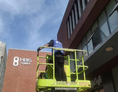 践行“效果服务”:爱优特员工租用升降机保障客户清洁安全