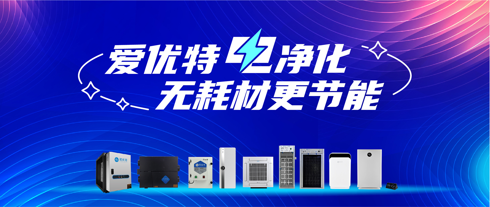 爱优特率先向市场推广微静电、超微静电、涡旋静电、微等离子等先进技术。主要产品包括空调回风净化器(消毒机)、空调箱净化器(消毒机)、落地空气净化器(消毒机)、空气过滤器、新风净化机、智清洁空气净化系统以及空气质量监控系统。此外还有自清洁油烟净化器、油烟净化设备以及卫生间除臭、垃圾房除臭设备等产品。